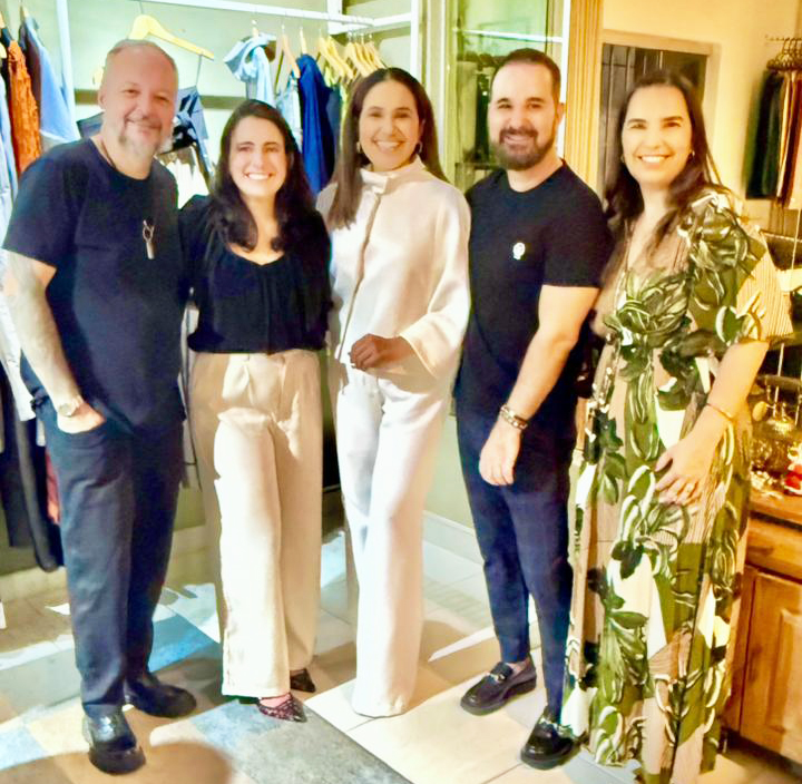 A atmosfera descontraída do evento foi acompanhada por espumante e um menu de comidinhas deliciosas preparado pelo Chef Daniel Martins, contribuindo para tornar a tarde ainda mais acolhedora. O Happy Hour reforçou o compromisso da Casa Club G Lifestyle e do Studio de Moda Nicholas Barhtras em promover encontros que unem moda, bem-estar, comportamento e gastronomia, sempre oferecendo experiências que inspiram e celebram o viver com estilo. Na foto estão: Nicholas Barhtras, Thais Gielfi Garcia Kliemann, Jakeline Teles, Hugo Alexandre Lima e Nádia Ragazzo.