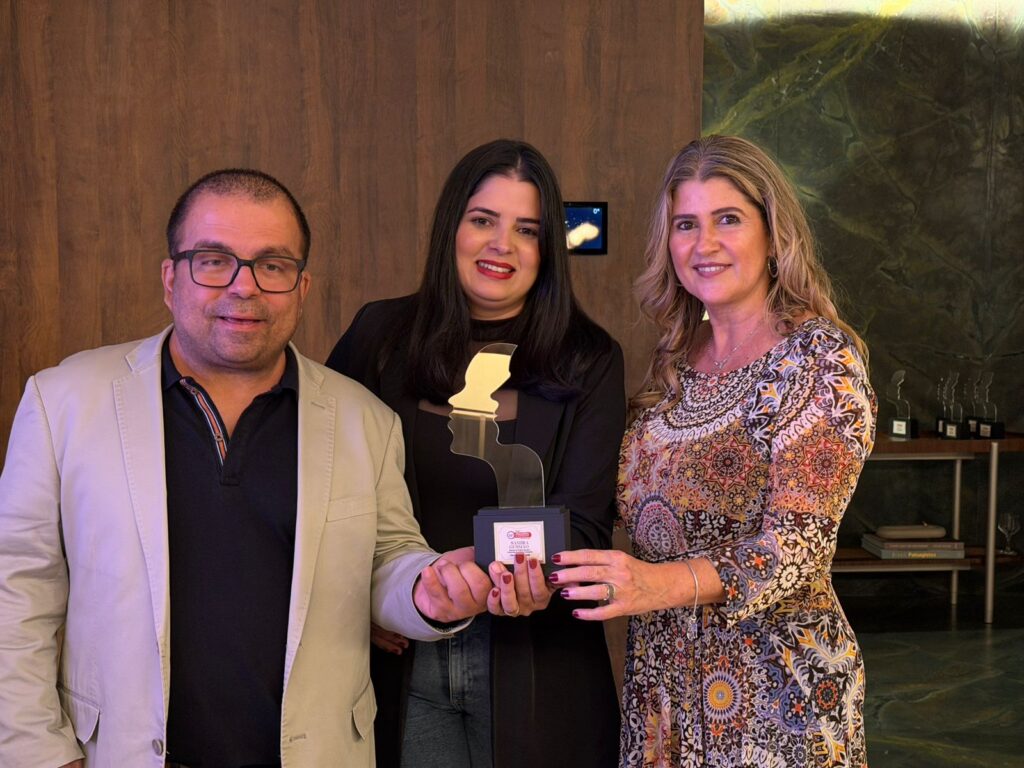 A Consciente Construtora e Incorporadora sediou, no decorado do Solenne Consciente, a entrega do 11º Prêmio Mulheres Mais Admiradas de Goiás, promovido pela Contato Comunicação. O evento reuniu lideranças femininas de diferentes áreas em um momento de celebração e reconhecimento às trajetórias que contribuem para o desenvolvimento do Estado. Na foto, o presidente do Instituto Consciente, Felipe Inácio, a gerente de projetos sociais e ambientais do Instituto, Sandra Gusmão, e a diretora da Contato Comunicação, Adriana Alves Ferreira Godinho.