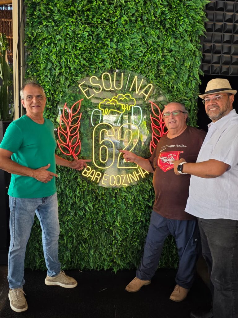 O empresário Sérgio Alves de Souza (D), proprietário do Esquina 62 Bar, no Parque Amazônia, recebeu no último sábado (27) o chef Gil Félix (E), responsável pela cozinha da Feijoada do Elpídio, e o restaurateur Elpídio Fiorda Neto. O encontro teve como objetivo vistoriar as instalações e alinhar as últimas estratégias para receber amigos e convidados na tradicional feijoada, que já faz parte do calendário gastronômico de Goiânia. A programação musical contará com a energia da DJ Luiza Martinez e do músico  Thiago Chiba com sua banda, garantindo os melhores sucessos do samba, pagode, forró, reggae, pop, rock e flashback.