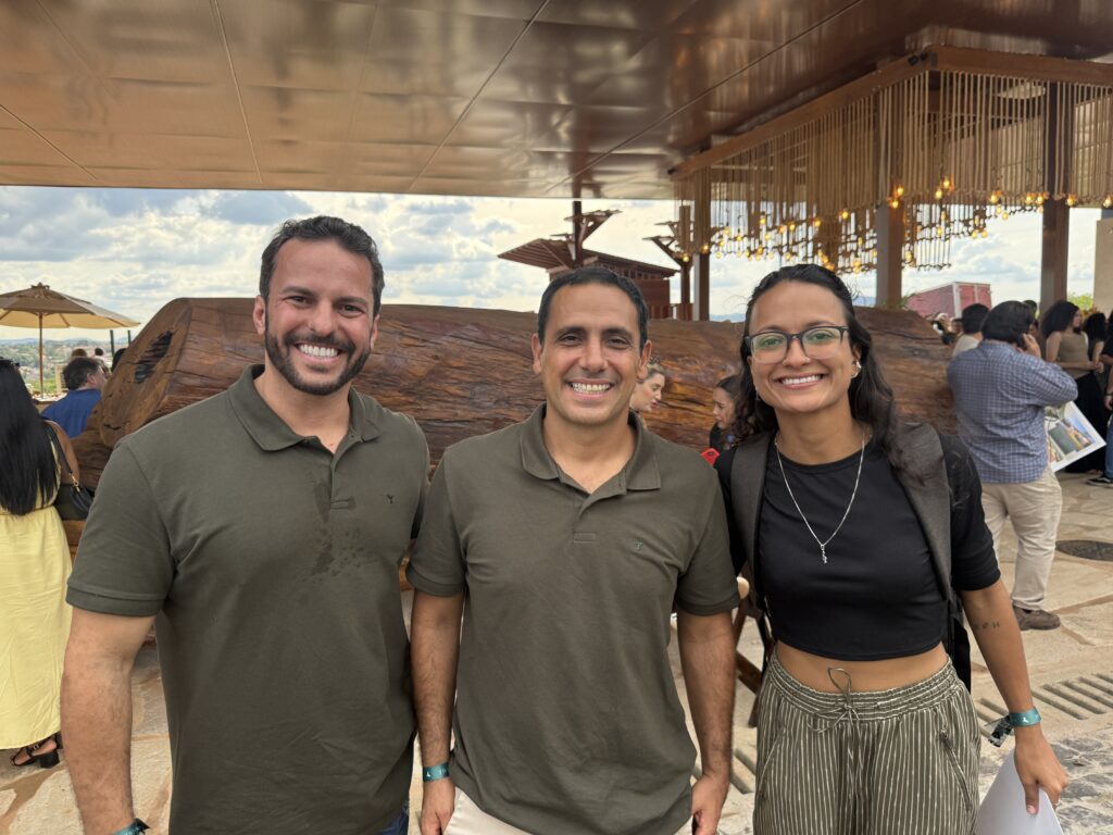 Caio Diniz, Leandro Daher e Láira Machado, da equipe da Raiz Urbana, uma empresa do Grupo Tropical, recepcionaram profissionais do mercado imobiliário no meeting de apresentação do Aldeia do Vale Pirenópolis, o mais novo condomínio horizontal de alto padrão na cidade histórica e turística mais chamosa de Goiás.