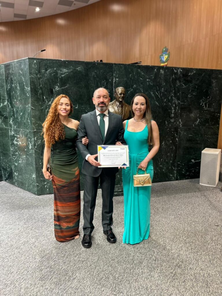 O conselheiro da Associação dos Registradores de Pessoas Naturais do Estado de Goiás (Arpen-GO) e vice-presidente da Arpen Brasil, Bruno Quintiliano — também presidente da Associação dos Notários e Registradores do Estado de Goiás (Anoreg/GO) e titular do cartório que leva seu nome, em Aparecida de Goiânia — recebeu no dia 19 de dezembro o Certificado de Mérito Legislativo, durante Sessão Solene realizada no Plenário Iris Rezende, na Assembleia Legislativa de Goiás (Alego), em homenagem aos cartórios goianos premiados no Prêmio de Qualidade Total ANOREG (PQTA 2025). O evento foi promovido pelos deputados Veter Martins e Lineu Olímpio, e destacou a excelência na gestão e a qualidade dos serviços extrajudiciais prestados à população.