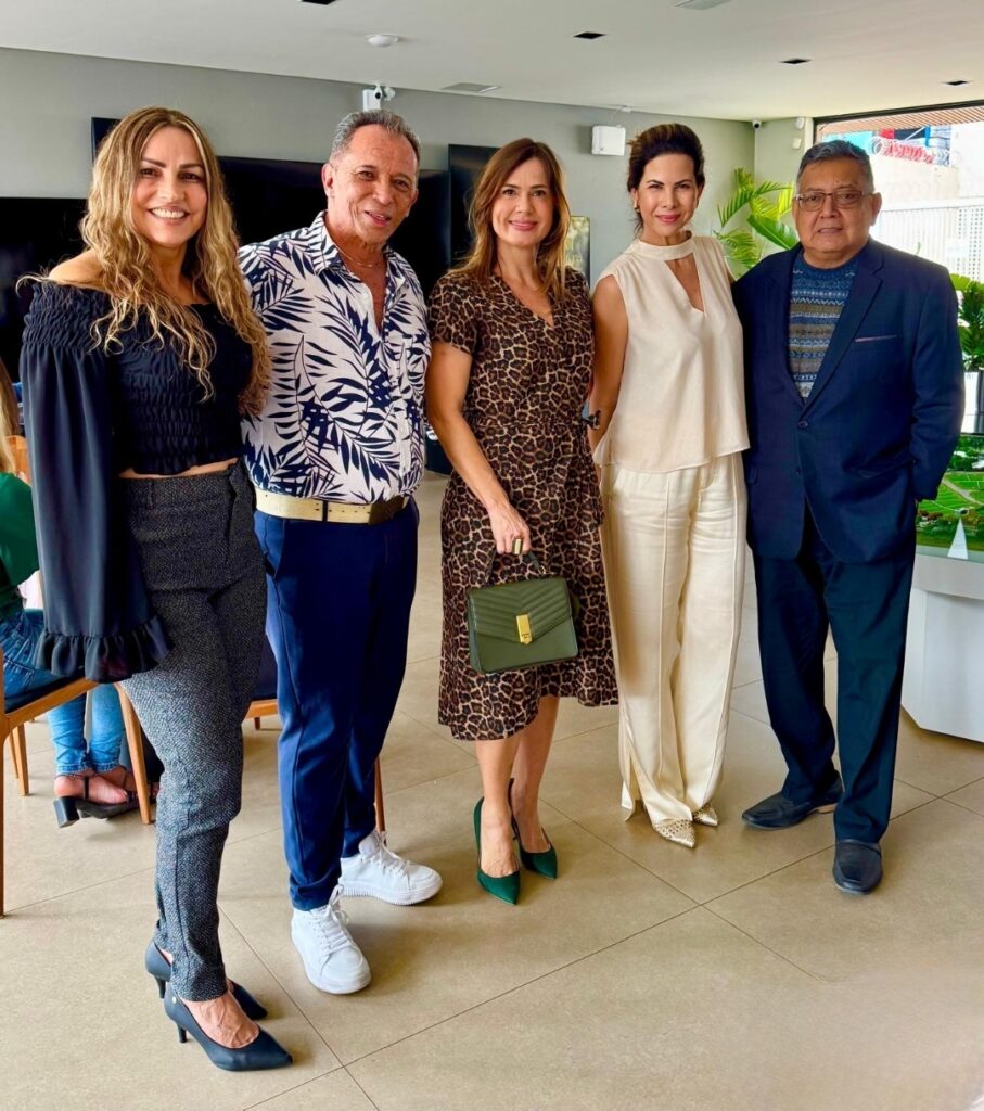 Elizabeth Marinho, Ronaldo Oliveira (New Faces Models), Cristina Nunez, Viviane Salles e Mário Guardado protagonizam um encontro inédito da moda em Goiânia. Foi extraordinário rever rostos que marcaram uma década da Maison Helena Guardado, reconhecida por suas coleções exclusivas de alta-costura internacional, que vestiram a sociedade goianiense e importantes personalidades do Brasil, incluindo atrizes da Rede Globo. Localizada, à época, na emblemática esquina da T-4 no Setor Bueno, a maison consolidou uma marca que criou tradição, elegância e um elevado padrão de sofisticação na moda local. O reencontro desse legado da moda aconteceu durante o lançamento do livro A Cura pela Palavra, de Viviane Salles, reunindo nomes que ajudaram a construir uma história memorável.