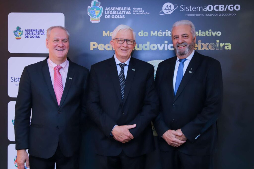 Os presidentes Celso Figueira, da Central Sicredi Brasil Central; Carmo Inácio Spies, da Sicredi Planalto Central; e Zeir Ascari, da Sicredi Cerrado GO, foram homenageados com a Medalha do Mérito Legislativo Pedro Ludovico Teixeira durante sessão solene da Assembleia Legislativa do Estado de Goiás (Alego), realizada na última sexta-feira (31/10) na sede da OCB-GO, em Goiânia. A cerimônia, que celebrou o Ano Internacional das Cooperativas, reuniu autoridades, parlamentares, familiares e lideranças do cooperativismo goiano, reconhecendo o trabalho dos dirigentes que contribuem para o desenvolvimento econômico e social do Estado por meio do cooperativismo.