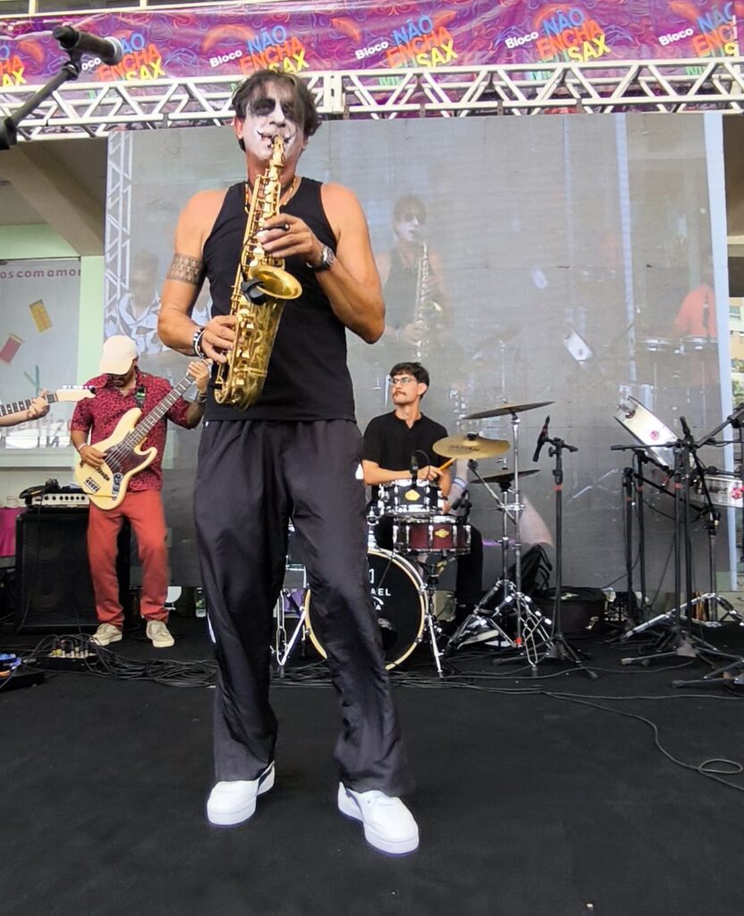 O bloco Não Encha Meu Sax nasceu há 12 anos, com uma dica do querido e sempre lembrado cartunista Jorge Braga (falecido em julho/25), que aconselhou o músico Fausto Noleto a criar o próprio bloco, e não é que o saxofonista levou a ideia a sério e a folia rendeu? E rendeu muito! Passando por então tradicionais bares da capital como Mercatto, Mediterrâneo, Bar Brahma e Espaço Giardino, o Não Encha Meu Sax cresceu e continua inovando e atraindo mais e mais pessoas. É bloco pra folião nenhum botar defeito! O Pré-carnaval em Goiânia segue no ritmo do crescimento da folia em Goiás.